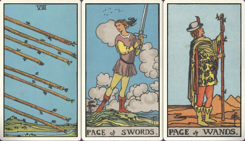 卜牌:权杖八+ 宝剑侍从+ 权杖侍从+