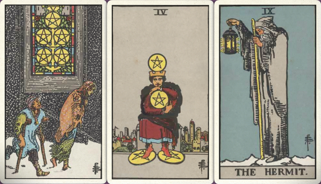 卜牌:倒吊人 圣杯骑士 权杖四