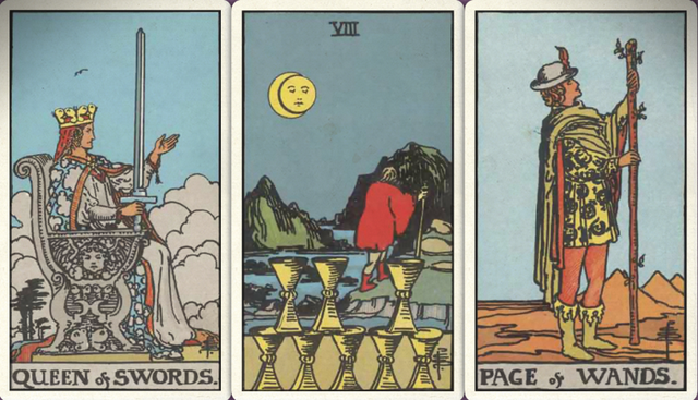 卜牌:宝剑皇后 圣杯八 权杖侍从