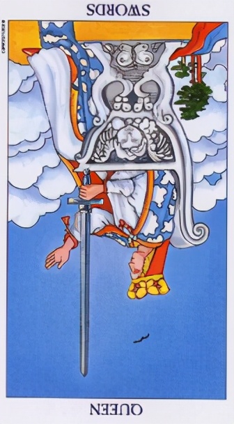 分析:宝剑皇后是犀利的,也是比较坚持己见的,并且皇后刚好代表的是母亲的角色。这里的宝剑皇后处于逆位,也意味着在今天除了建议你花点时间陪伴母亲,陪她聊聊天,听一听她的唠叨外,也建议你放下对母亲的评判,否定,争论,只是倾听,只是聊聊。这对她来讲就是很棒的礼物了!