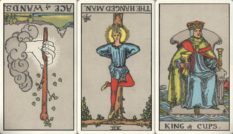 卜牌:权杖首牌- 倒吊人- 圣杯皇帝+