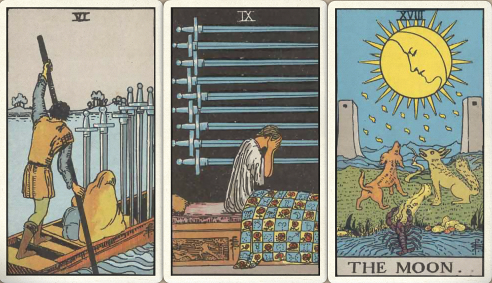 卜牌:宝剑六+ 宝剑九+ 月亮+