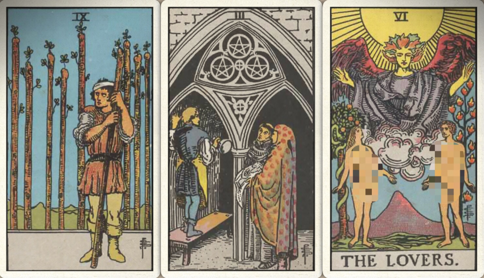 卜牌:权杖九+ 星币三+ 恋人+