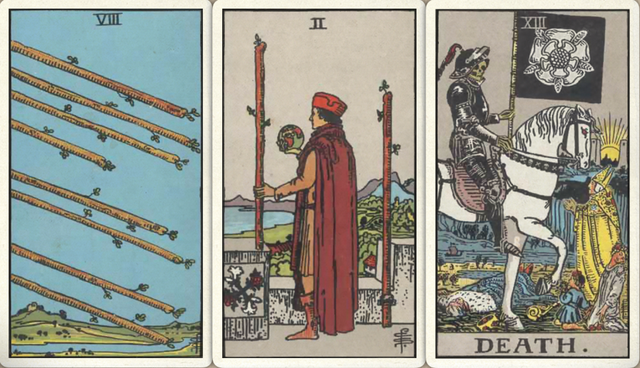 卜牌:权杖八 权杖二 死神