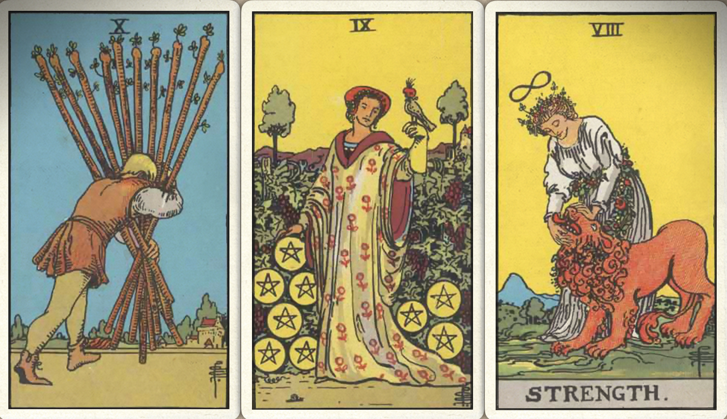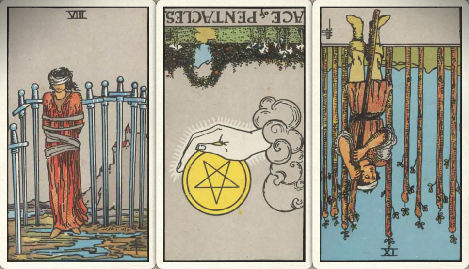 卜牌:宝剑八+ 星币首牌- 权杖九-