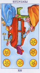 分析:星币六牌面上的人一副给予的状态,但这里处于逆位。意味着,或许在过去里你们的感情是值得你付出和发展的。但在近期不知道发生了什么事,让你们的关系发生了颠倒和翻转,也让这段关系可能已经不再那么值得你选择了。如果你依旧要选择他,那么就要做好,可能你的付出无法得到对应回报的心理准备。