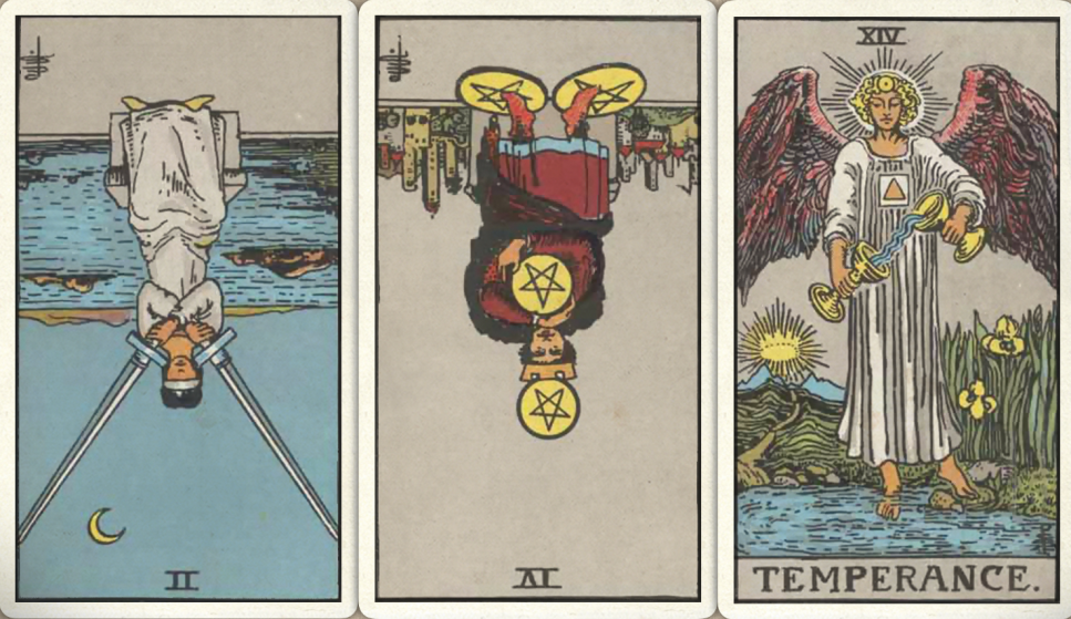 卜牌:宝剑二- 星币四- 节制+