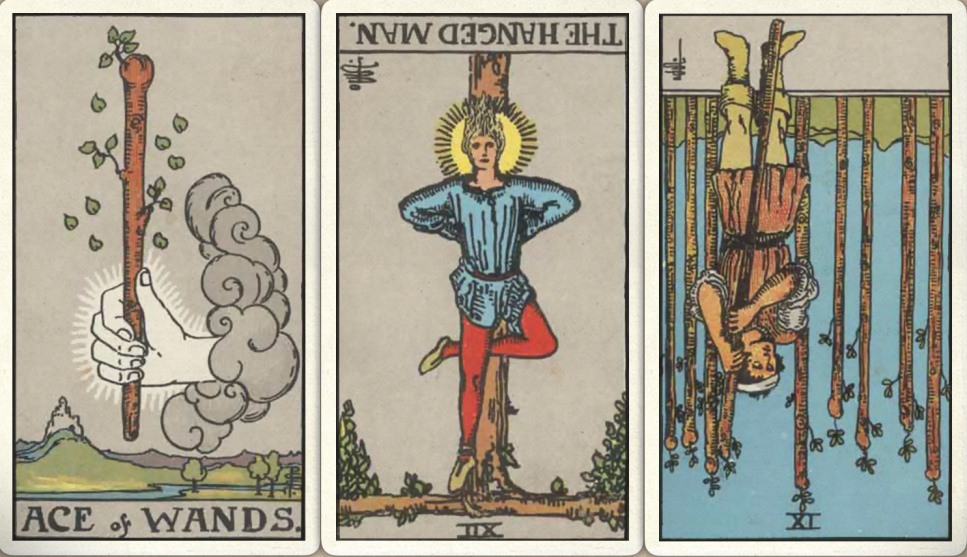 卜牌:权杖首牌+ 吊人- 权杖九-