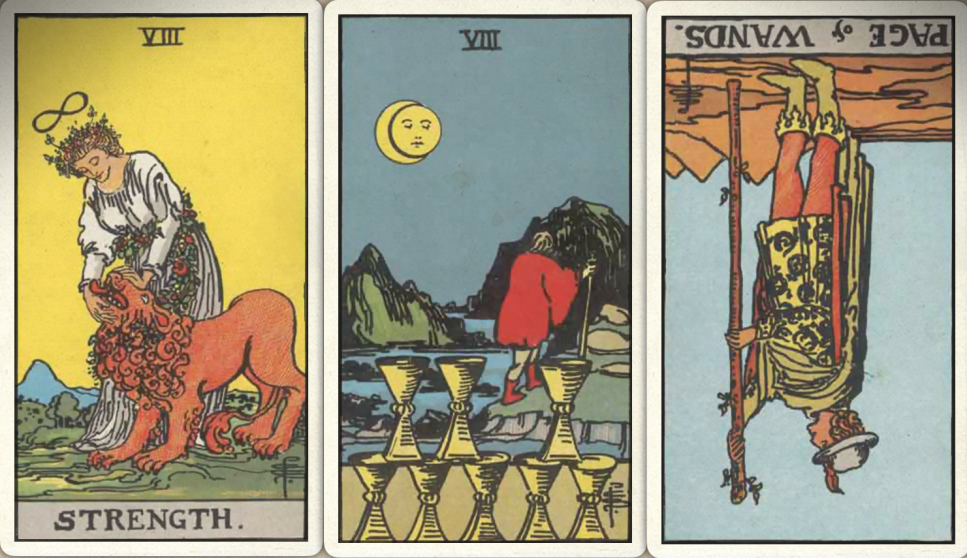 卜牌:力量+ 圣杯八+ 权杖侍从-