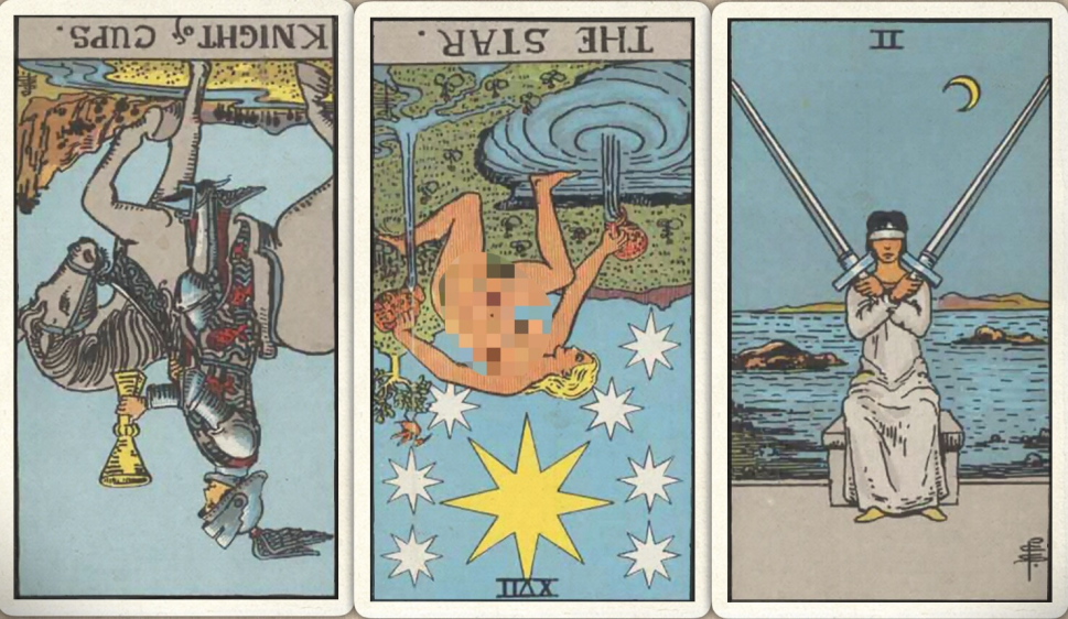 卜牌:圣杯骑士- 星星- 宝剑二+