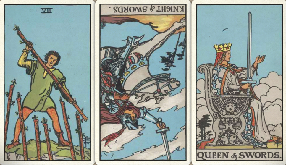 卜牌:权杖七+ 宝剑骑士- 宝剑皇后+