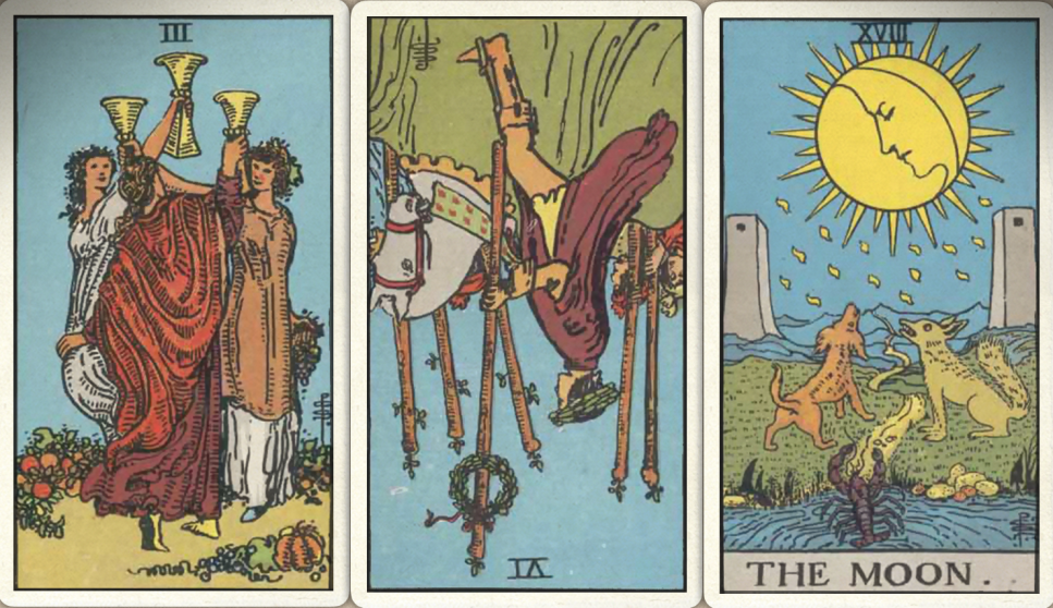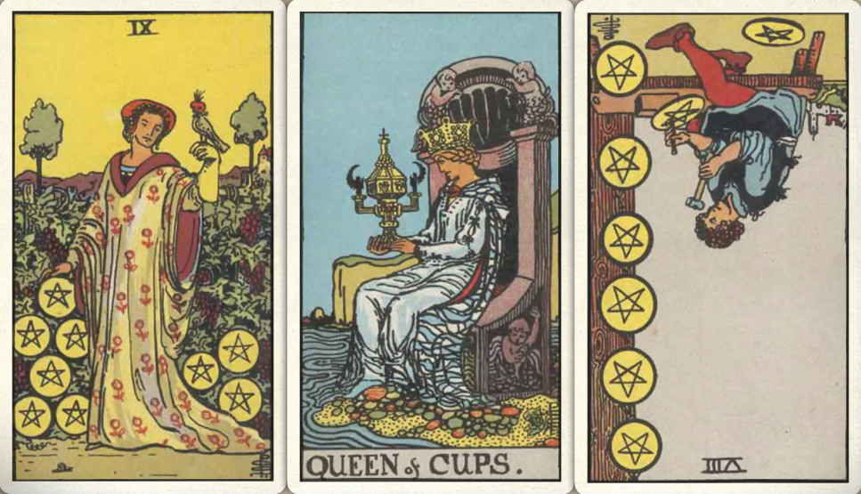 卜牌:星币九+ 圣杯皇后+ 星币八-