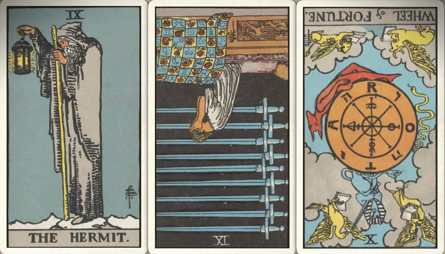 卜牌:隐士+ 宝剑九- 命运之轮-
