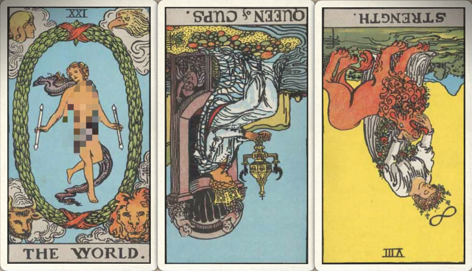 卜牌:世界+ 圣杯皇后- 力量-