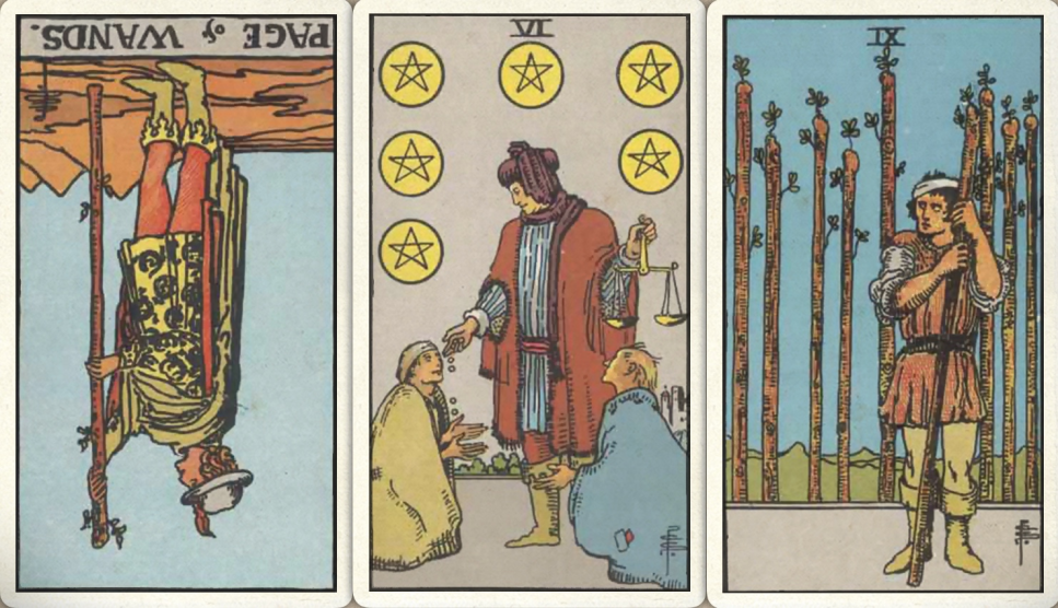 卜牌:权杖侍从- 星币六+ 权杖九+