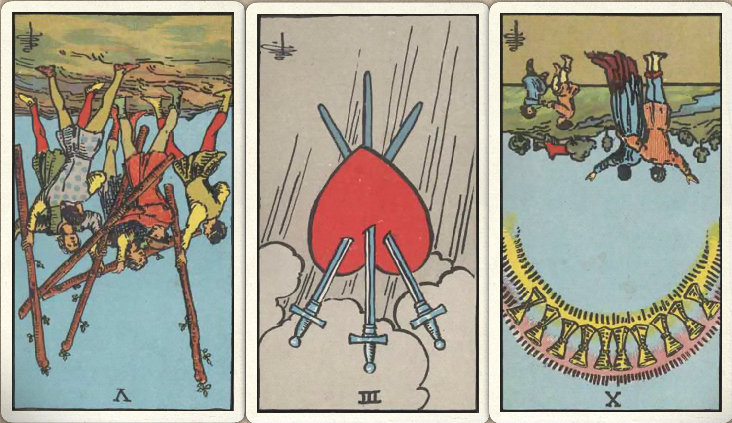 卜牌:权杖五- 宝剑三- 圣杯十-