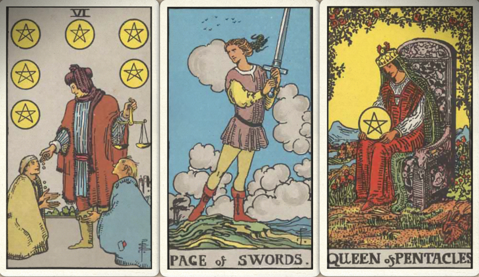 卜牌:星币六+ 宝剑侍从+ 星币皇后+