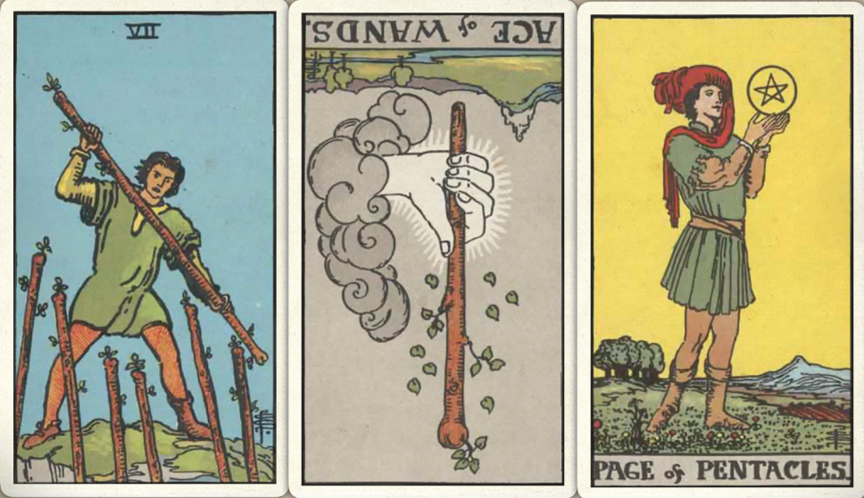 卜牌:权杖七+ 权杖首牌- 星币侍从+