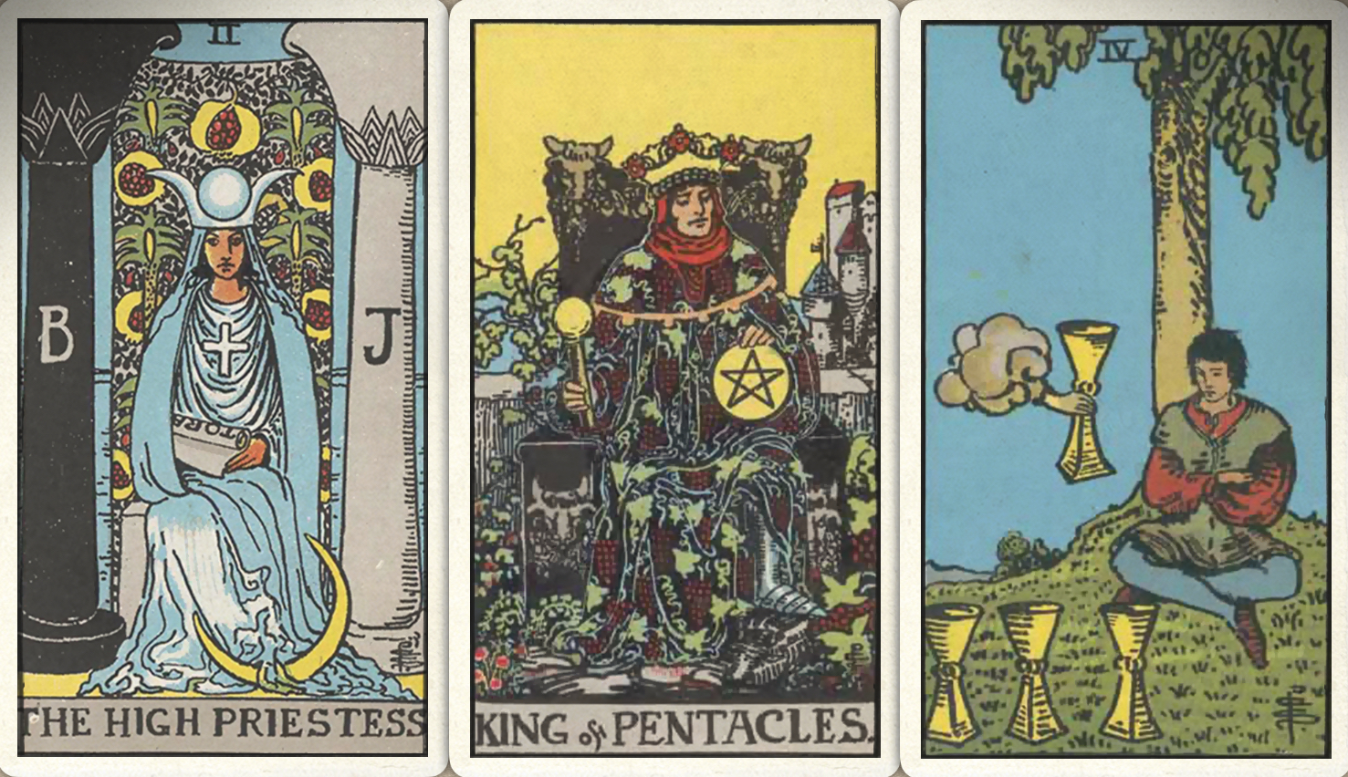 卜牌:女祭司+ 皇帝+ 圣杯四+