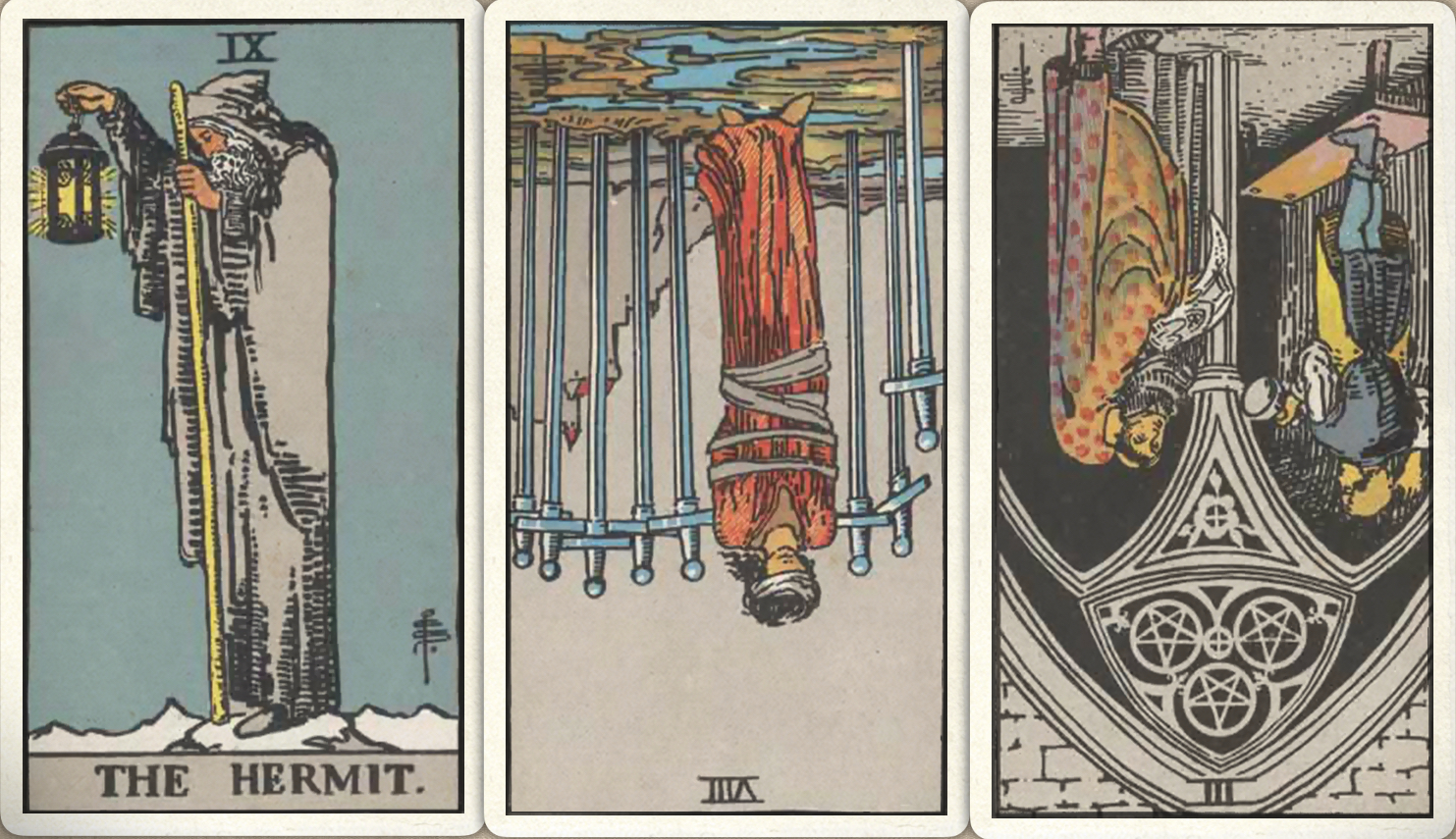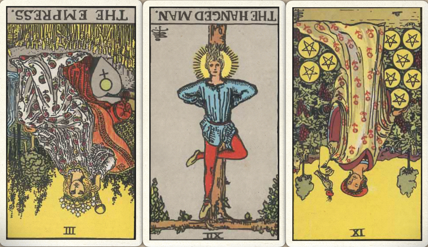 卜牌:皇后- 倒吊人- 星币九-