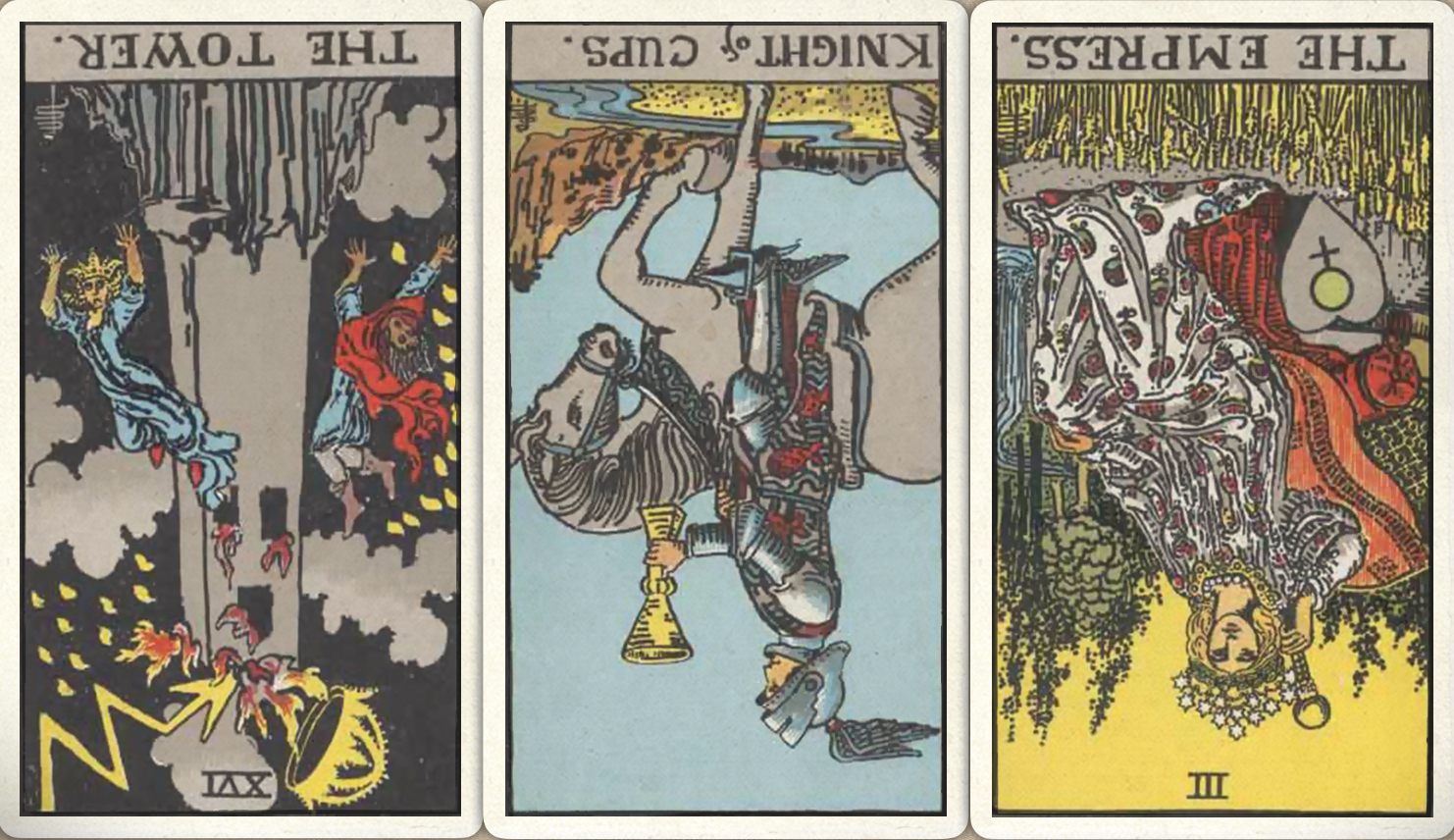 卜牌:高塔- 圣杯骑士- 皇后-