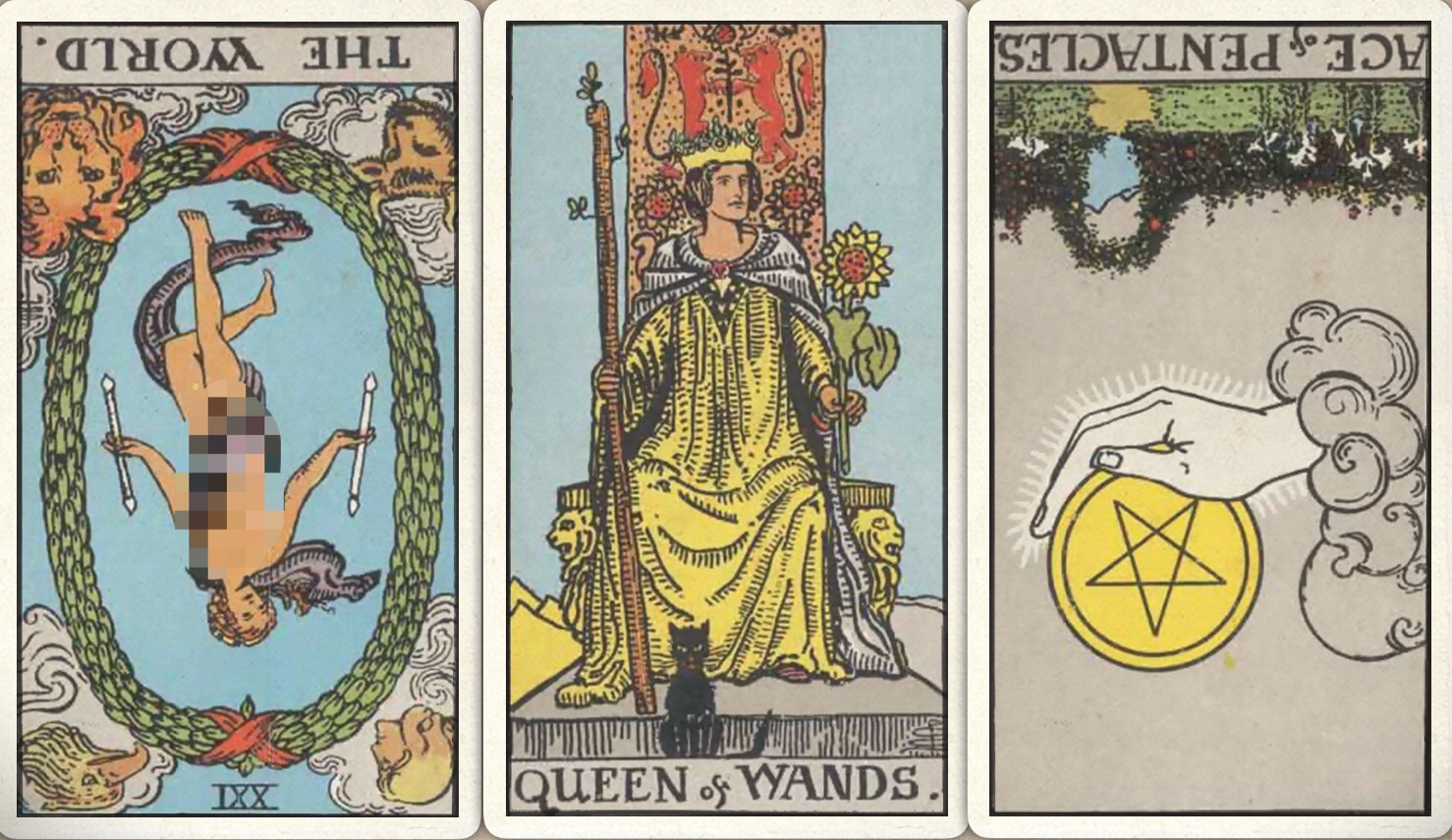 卜牌:世界- 权杖皇后+ 星币首牌-