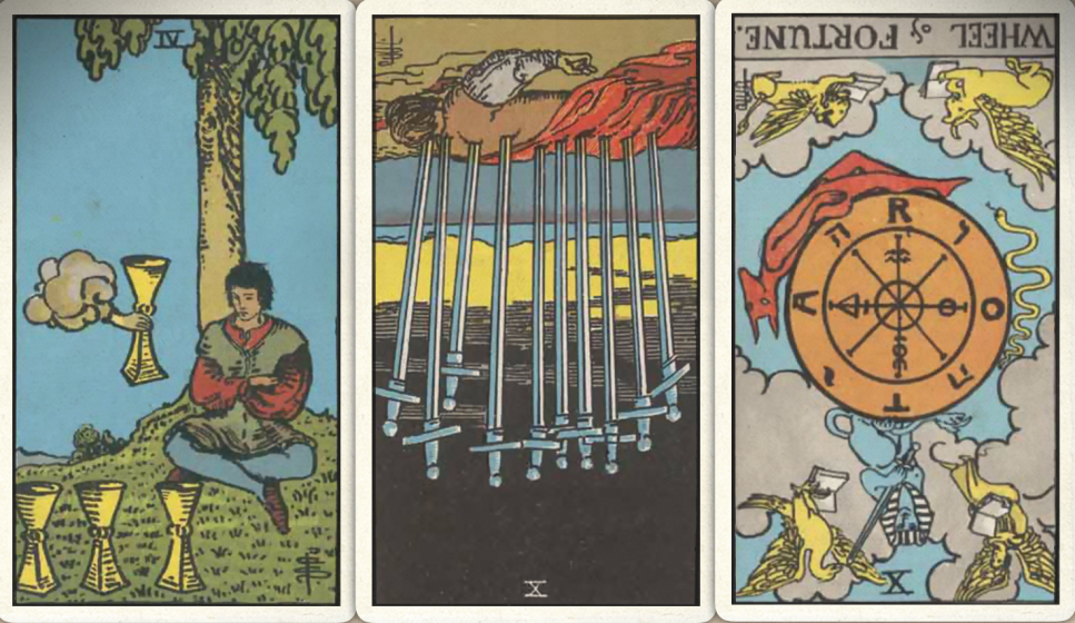 卜牌:圣杯四+ 宝剑十- 命运之轮-
