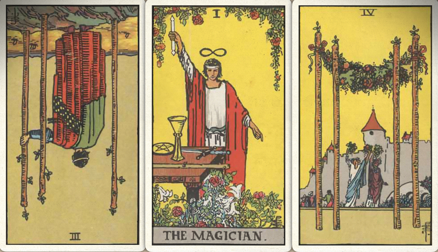 卜牌:权杖三- 魔法师+ 权杖四+
