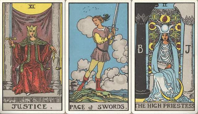 卜牌:正义+ 宝剑侍从+ 女祭司+
