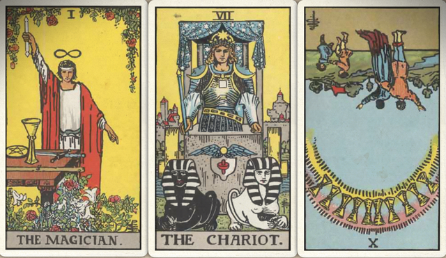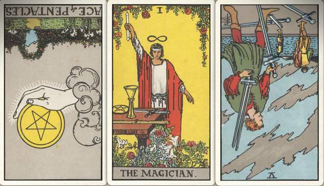 卜牌:星币首牌- 魔法师+ 宝剑五-