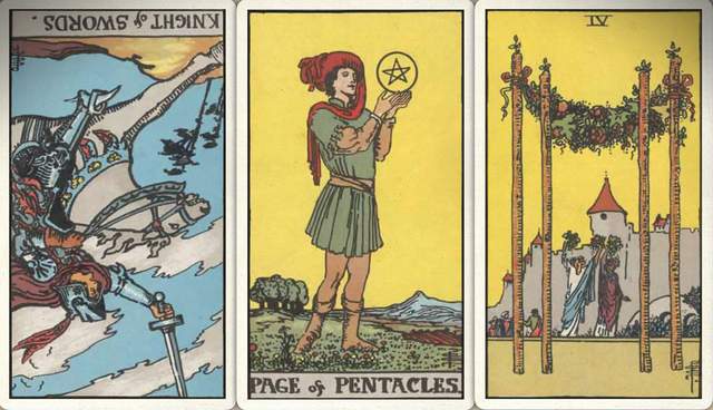 卜牌:宝剑骑士- 星币侍从+ 权杖四+