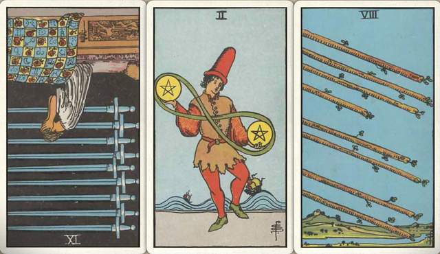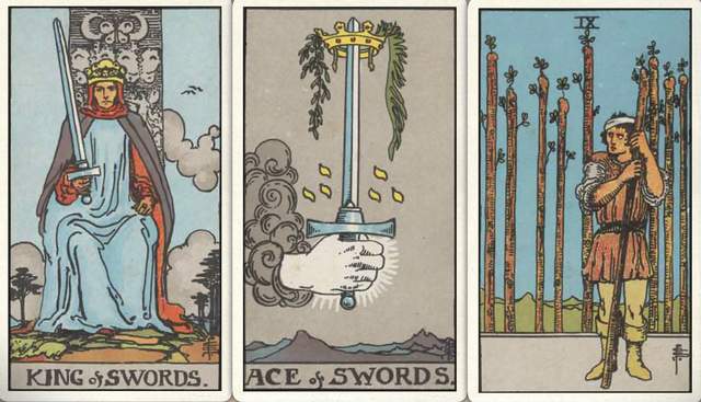 卜牌:宝剑皇帝+ 宝剑首牌+ 权杖九+