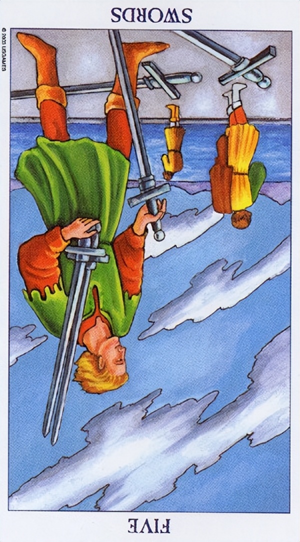 分析:牌面上的人明明看到他人吵架,却只顾着自己获取利益,这明显是非常自私的行为,。但这张牌又处于逆位,说明了他内在在这方面其实是比较矛盾的。在一些事上他会比较自私只考虑他自己,但在有些时候他又会有一定的同理心,想要帮助他人。那么具体时候他是否会帮忙还是坚定自私,就不一定了。
