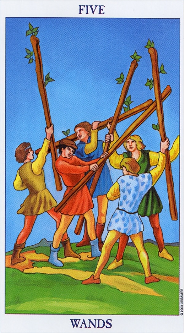 分析:牌面上有五个人一起在做事,虽然看似很乱,但却每个人都站立着作着自己的事。意味着你的最大优点就是你拥有很棒的多线处理事情的能力,在一些特殊时候,你能够做到一心多用,同时处理好几个事,并且至少能将这些事处理到位,这真的很特别哦!