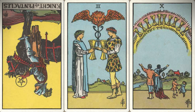 卜牌:星币骑士- 圣杯二+ 圣杯十+