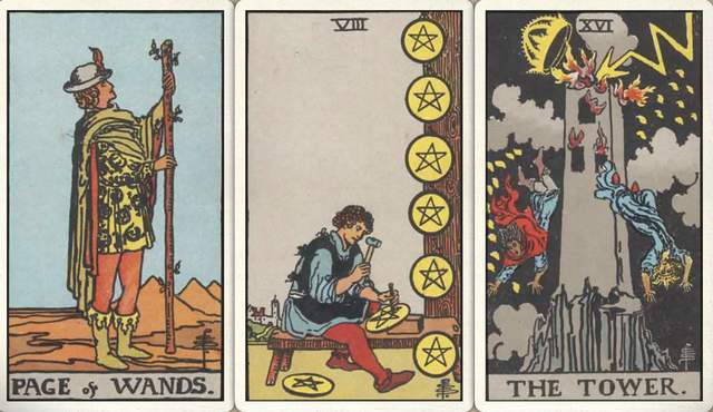 卜牌:权杖侍从+ 星币八+ 高塔+