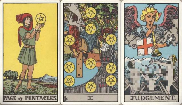卜牌:星币侍从+ 星币十- 审判+