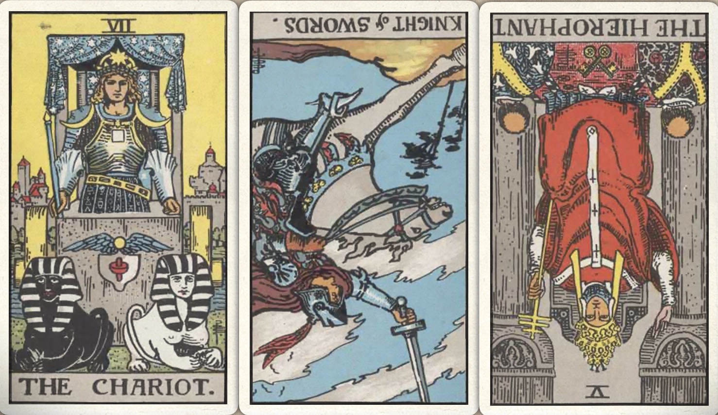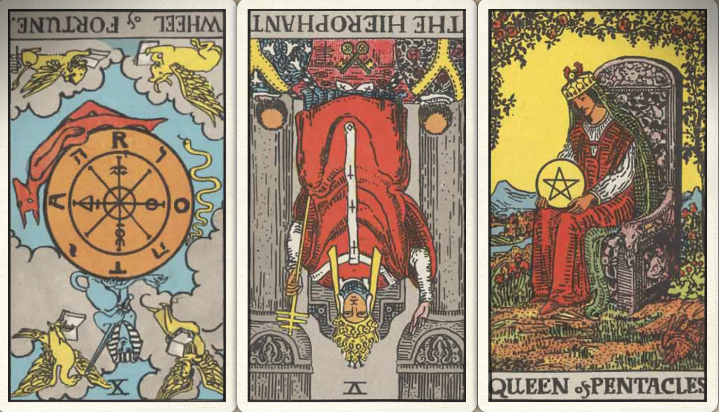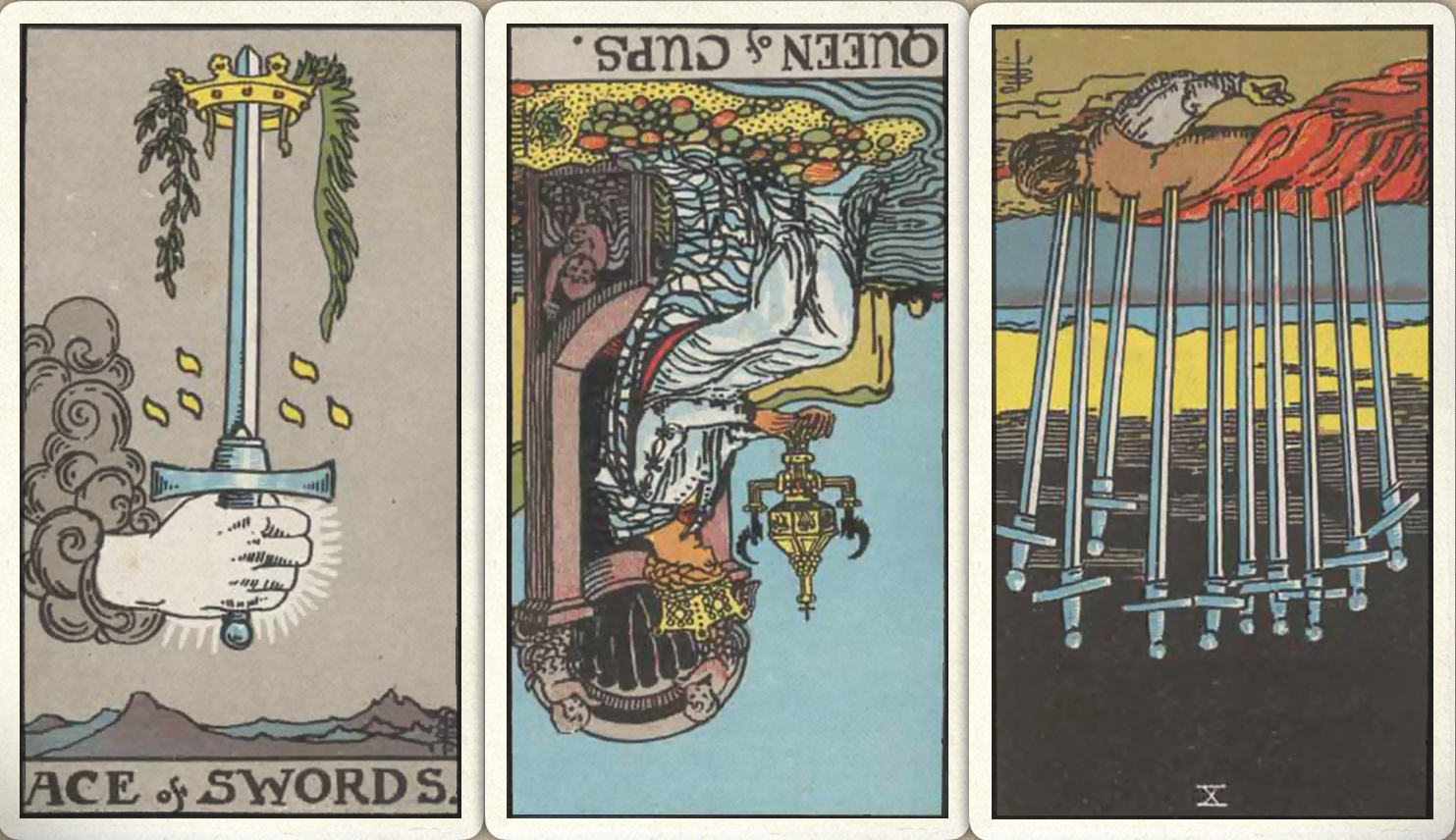 卜牌:宝剑首牌+ 圣杯皇后- 宝剑十-