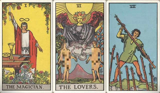 卜牌:魔法师+ 恋人+ 权杖七+