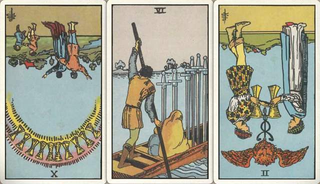 卜牌:圣杯十- 宝剑六+ 圣杯二-