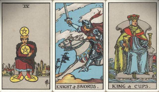 卜牌:星币四+ 宝剑骑士+ 圣杯皇帝+