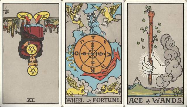 卜牌:星币四- 命运之轮+ 权杖首牌+