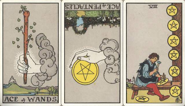 卜牌:权杖首牌+ 星币首牌- 星币八+