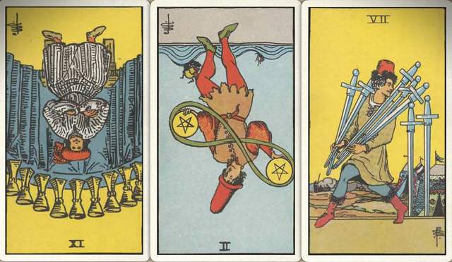 卜牌:圣杯九- 星币二- 宝剑七+