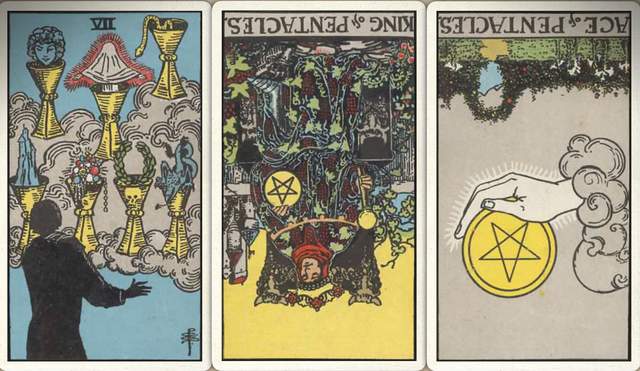 卜牌:圣杯七+ 星币皇帝- 星币首牌-