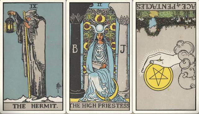 卜牌:隐士+ 女祭司+ 星币首牌-