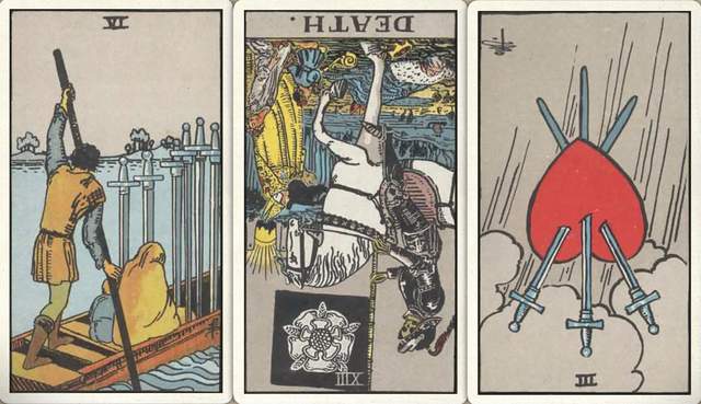卜牌:宝剑六+ 死神- 宝剑三-