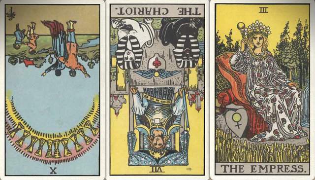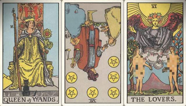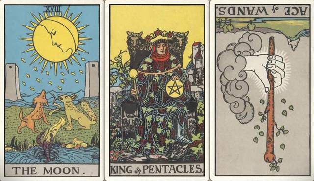 卜牌:月亮+ 星币皇帝+ 权杖首牌-