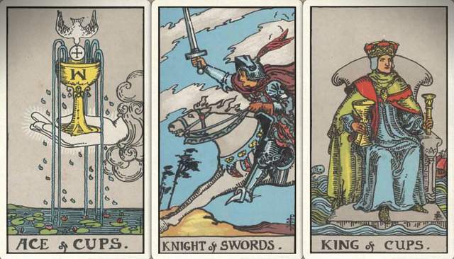 卜牌:圣杯首牌+ 宝剑骑士+ 圣杯皇帝+