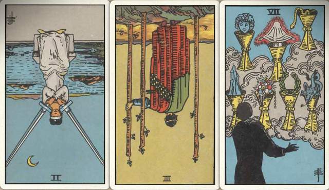 卜牌:宝剑二- 权杖三- 圣杯七+